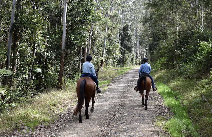 No. The property is mainly horse paddocks for the Kerewong horses. However, we offer a round yard, riding arena, and mountain trail obstacle course. You can ride out the gate to explore the extensive bush horseriding trails in the Kerewong State Forest, or drive a short distance to the coast for beach riding.