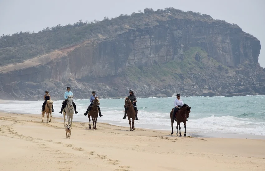 Each day has a different destination giving a good variety of scenery. Trails lead to breathtaking mountaintop views, vineyards, green rolling farmland, avocado orchards, creek crossings, majestic eucalypt trees and secluded rainforest valleys. The spectacular beaches are a horse rider's dream come true.
