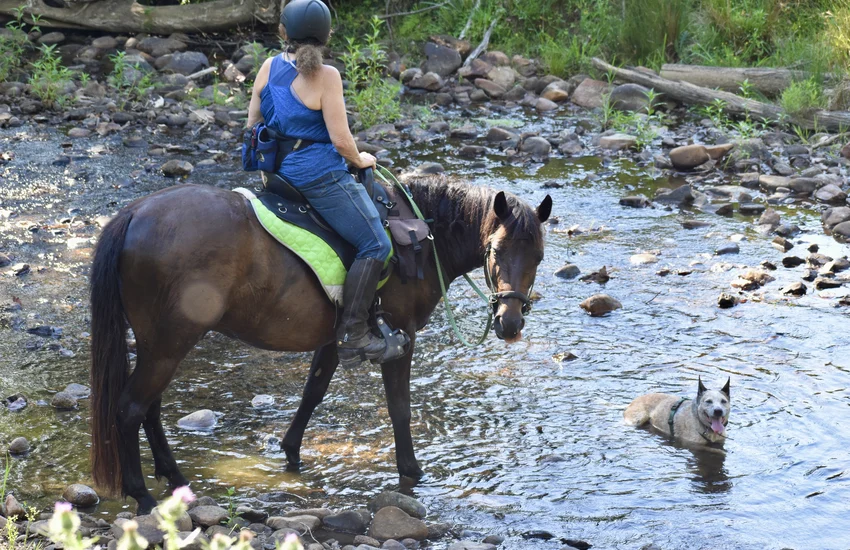 - We have an early start, riding through a beautiful neighbouring property, cross scenic Upsalls Creek (platypus live here but are rarely seen) and a steep climb up to a forest ridge.