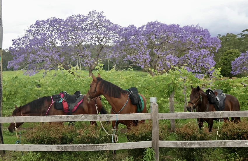 - Highlight from late October to early December are the purple blossoming Jacaranda Trees on the extensive winery grounds and a group photo with the horses under the purple trees.